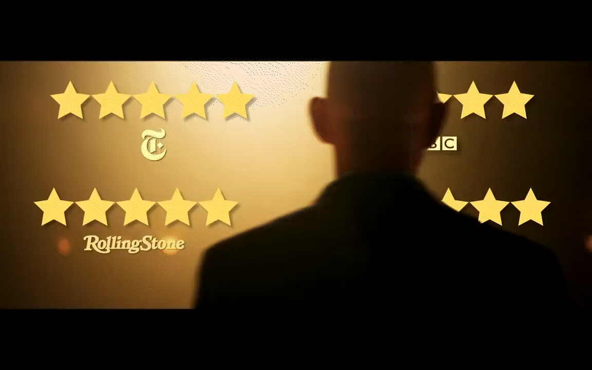Finally, I wanted to mention some of the technical aspects of this project. Aside from telling a convincing story, I wanted to enhance the feel of the trailer. I accomplished this by adding graphics to shots. This is something I've seen done on countless trailers, especially with reviews. I'm particularly proud of the shot on the right, where it looks as if J.K. Simmons is in front of the reviews.